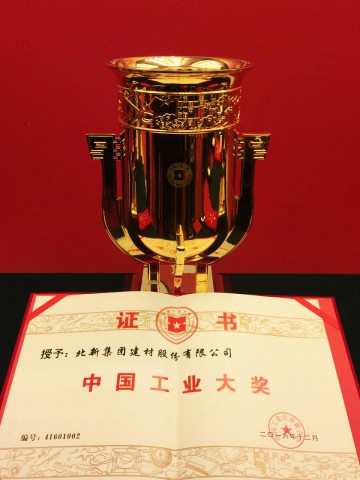 2016年12月11日,被誉为“中国工业界奥斯卡”的中国工业大奖发布会在人民大会堂隆重举行。十届全国人大副委员长顾秀莲、中国工业经济联合会会长李毅中、国务院国资委副主任刘强、工业和信息化部总工程师张峰等领导出席会议并为获奖企业颁奖。中国运载火箭、北新建材等13家企业以及中国探月工程探测器系统、航母工程等9个项目荣获中国工业大奖。北新建材董事长王兵上台领奖并代表获奖企业发表题为《北新建材:中国工业大奖是怎样炼成的?》的演讲。